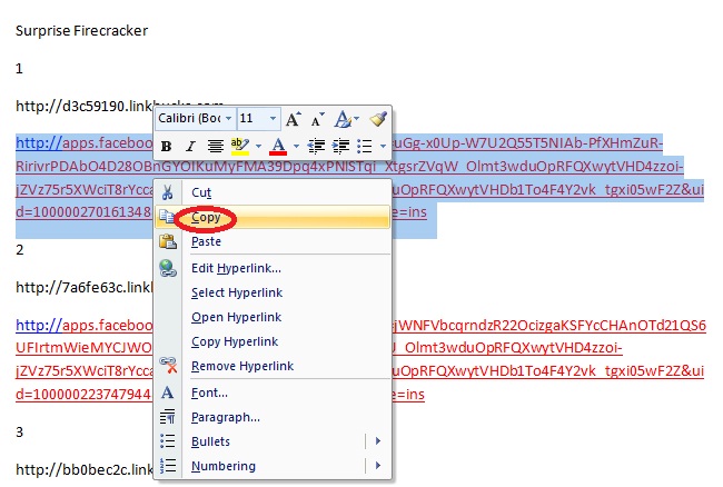 Highlight your one of your links then right-click it and select copy.